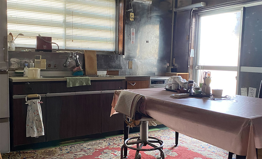 Though moderate in scale, the kitchen feels somewhat enclosed due to its density of material elements. It is also a space where scents linger strongly, evoking a sense of nostalgia. The composition reflects both the material compactness and the emotional spaciousness of this room.